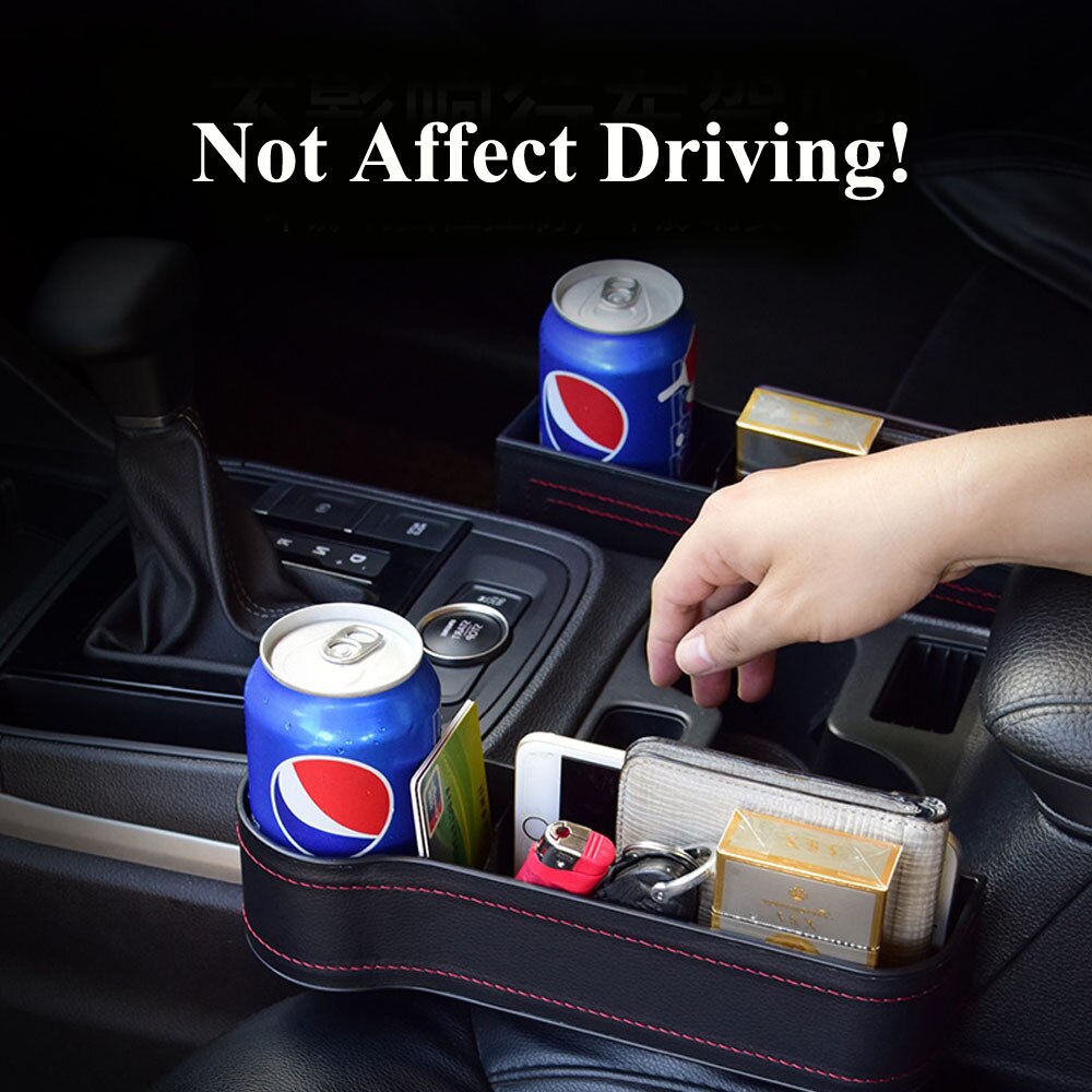 PU Leather Car Seat Organizer Drink Holder Multifunctional Black Car Seat Gap Storage Box ABS Pocket Organizer Between Car Seats