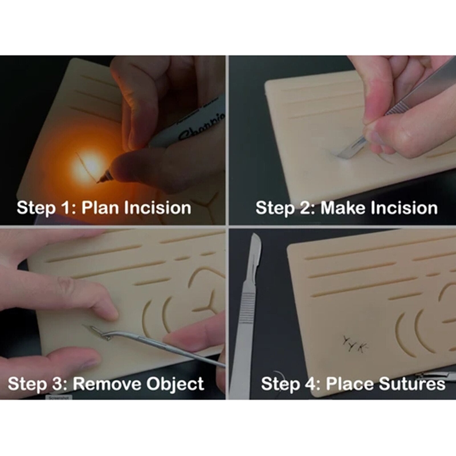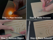 The Suture Kit is the ultimate training device for developing and refining your suturing techniques. It contains a silicone practice pad and all the instruments and sutures needed for proper suture training. The brand new surgery game is a fun and challenging activity that simulates removing different foreign objects.