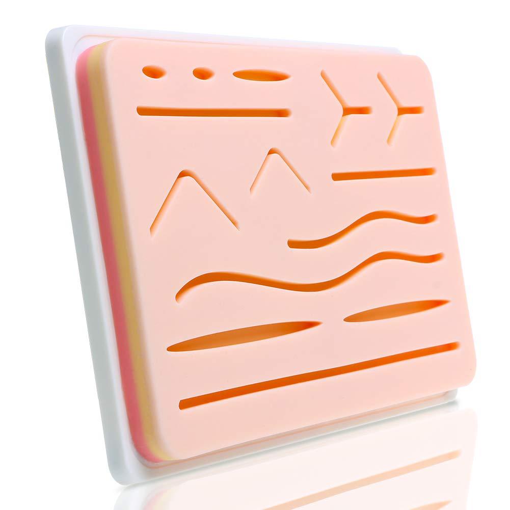 The practice pad is composed of mesh-reinforced silicone gels that accurately simulate the density and feel of skin.