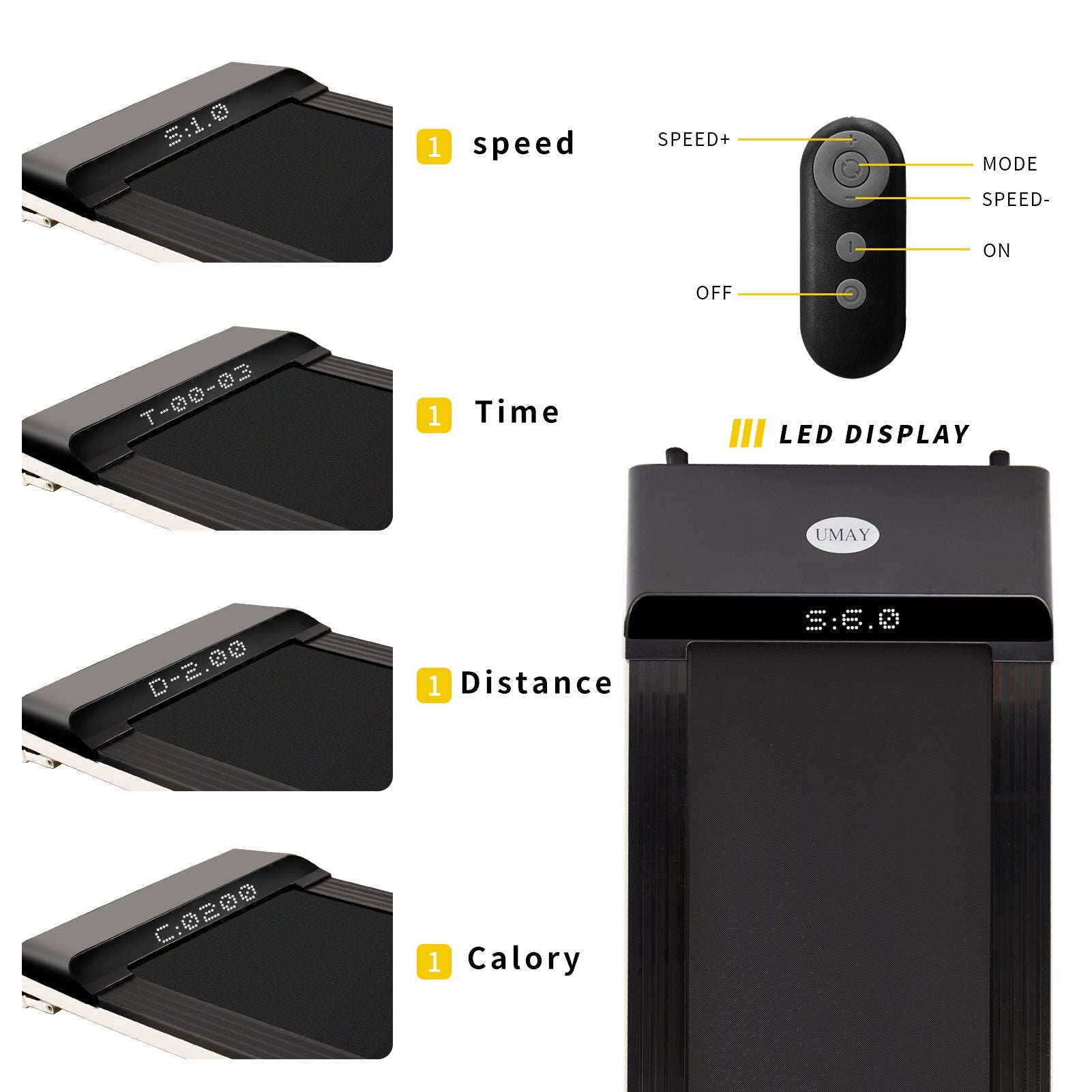 UMAY Portable Treadmill with Foldable Wheels, Under Desk Walking Pad Flat Slim Treadmill, Sports App, Installation-Free, Remote Control, Jogging Running Machine for Home/Office