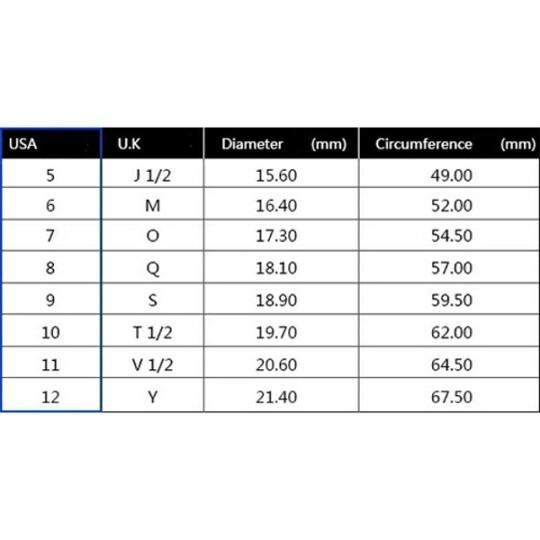 | USA | U.K | Diameter (mm) | Circumference (mm) |